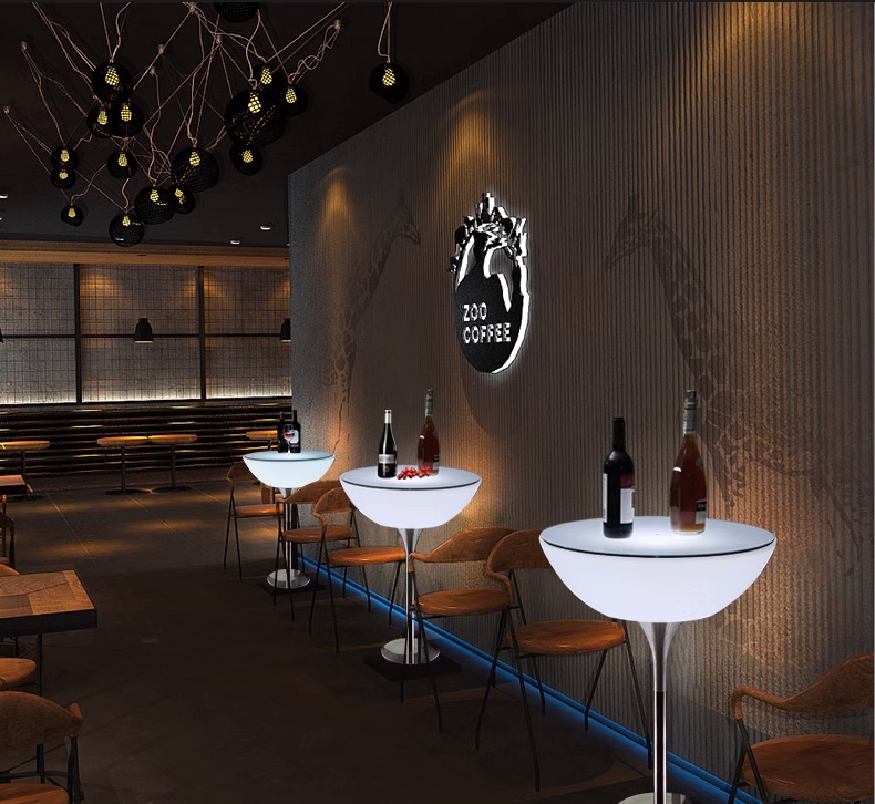 Стол светящийся круглый на металическом основании 60х60х76